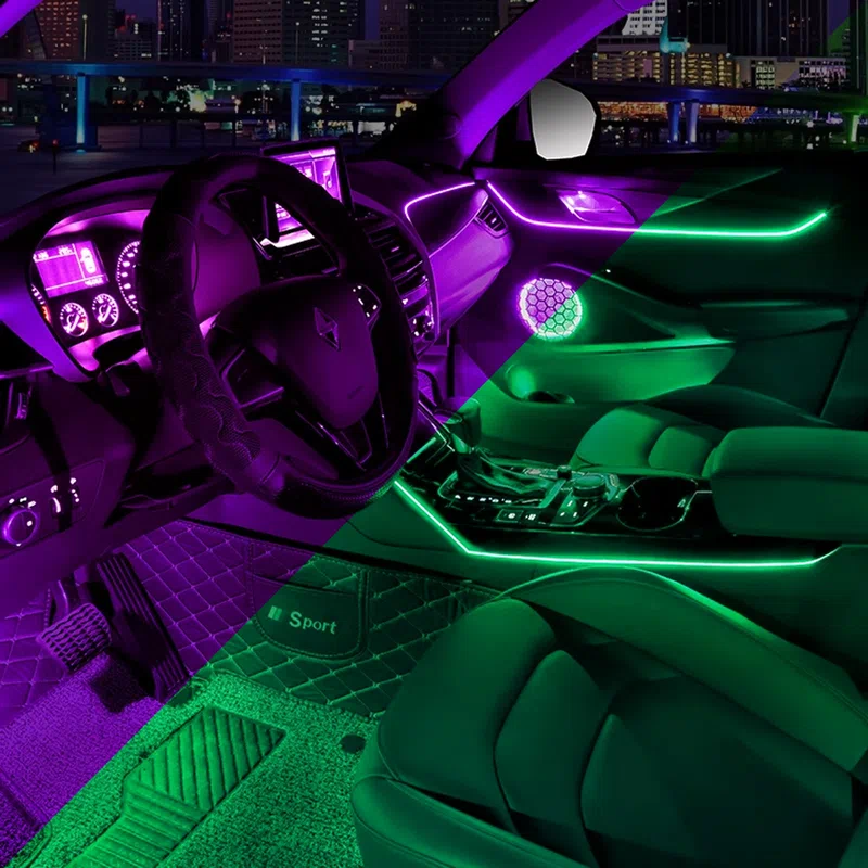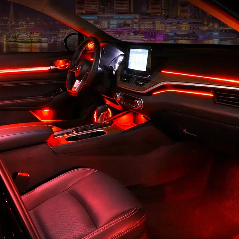 The car interior fiber optic light kit is easy to install. It only needs to be tucked into the gap of the car dashboard, center control, and door. When the light is turned off, it is almost invisible and does not affect the appearance. After turned on it, it decorates the outline of your car’s interior, full of technology.