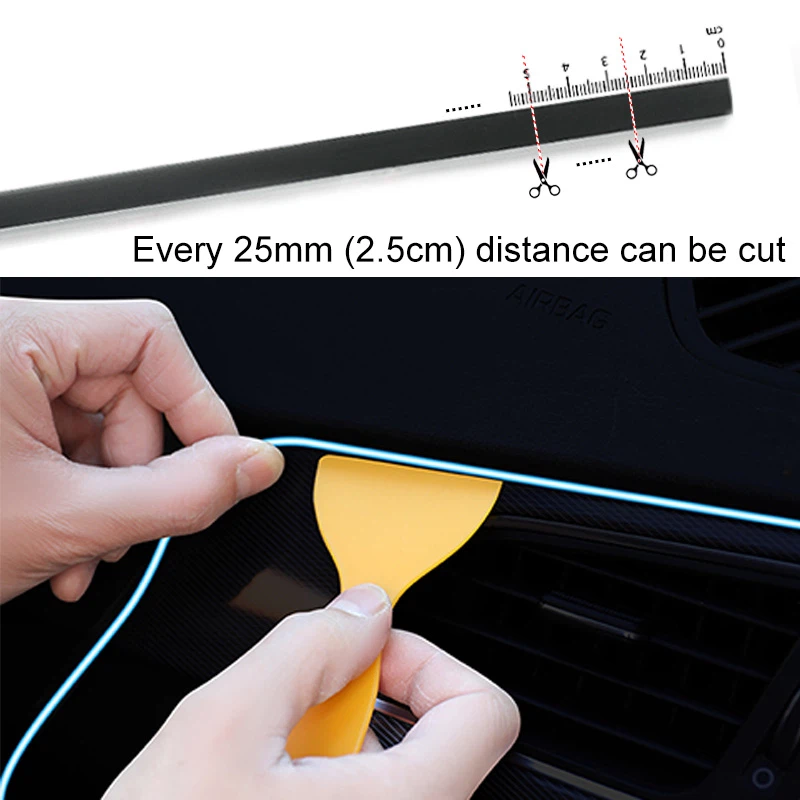 The car interior light strip from the tail end, every 25mm distance can be cut, you can cut the light bar to the length you want according to this rule.
